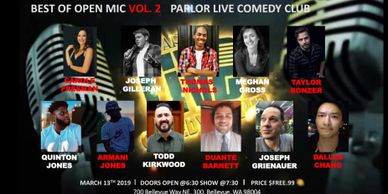 Duante` had gotten his wardrobe back and now he is in a 3 piece telling jokes. He got invited to participate in the last local showcase at the Parlor in Bellevue. He had a great set and started his SuitMan trademark.